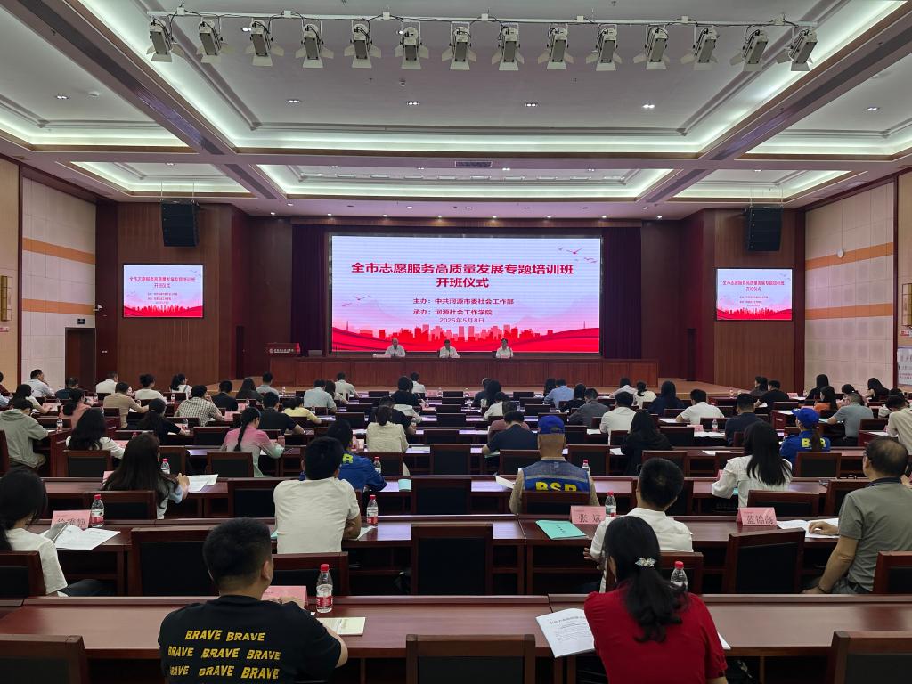 为深入学习贯彻习近平总书记关于志愿服务的重要论述和重要指示批示精神,进一步提升河源市志愿服务水平,推动志愿服务事业高质量发展,5月8日,全市志愿服务高质量发展专题培训班在我校学术交流中心报告厅顺利开班,市委社会工作部部长、市委两新工委书记朱永生,我校副校长姚家芳出席开班仪式,仪式由市委社会工作部副部长彭志波主持,来自全市各机关单位、社会组织的110名学员齐聚一堂,共同学习交流。