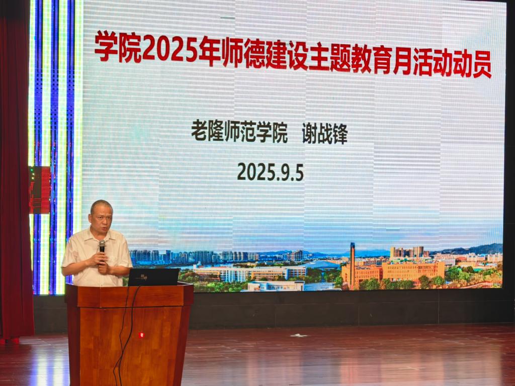 随后,学院党委副书记谢战锋作2025年师德建设主题教育月活动动员报告。他阐述了新时期加强师德师风建设的重要意义,并对主题教育月的活动方案、学习内容与实践要求进行了全面解读与安排。他强调,全体教职工应积极参与系列活动,通过学习教育、自查自纠、典型宣传等方式,深刻领会教育家精神的内涵,自觉践行高尚师德,筑牢立德树人的思想根基。