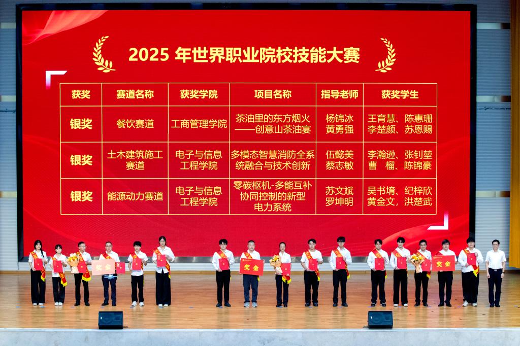 贺扬眉、袁娜、葛建新等41名教师荣获2025年“优秀教师”光荣称号;教师刘日春、谢晨、李志宇、邱晨阳荣获2025年“优秀辅导员”光荣称号;谢璟、向群飞等42名教师荣获“优秀班主任”光荣称号;赖星华、高山竹、黄舒等18名教师荣获“先进教育工作者”光荣称号。
