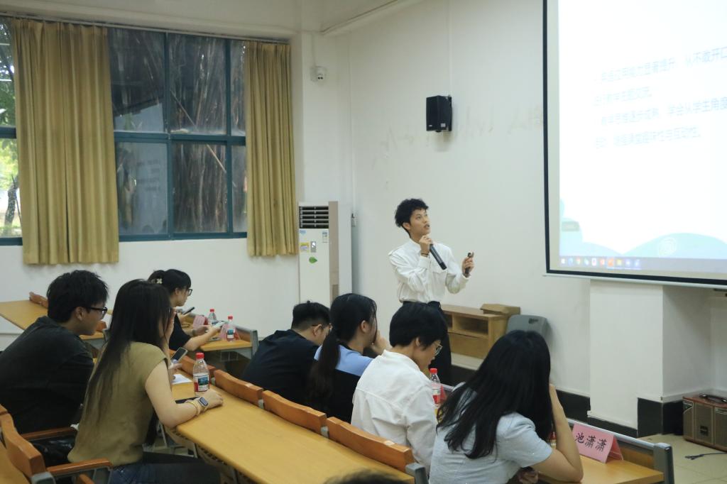 活动特别邀请2024级专硕项目优秀学生代表陈彦均、徐文峰分享学习经验。陈彦均通过PPT展示了英国游学的精彩历程与深刻感悟,着重强调跨文化交流对拓宽视野的重要性,他表示,与英国学生的深度互动带来了思维碰撞,让人学会以开放视角理解多元文化;徐文峰则从个人成长与学习规划角度,分享了在项目中的学习收获,鼓励新生珍惜机会、深耕学业,为职业发展筑牢根基。