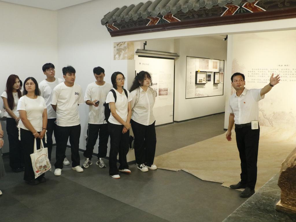 在纪念馆内,讲解员张慷东依托珍贵实物、历史图片与文字史料,系统讲述邓缵先赴疆戍边、兴修水利、发展教育的光辉事迹,引导师生深刻感悟先辈“一寸山河一寸心”的忠诚担当与“护疆安边、团结兴邦”的崇高精神。他结合史料细节,生动诠释百年前戍边者为维护国家统一、促进民族团结所付出的艰辛努力,让抽象的“四个与共”理念在历史场景中变得可感可触、入脑入心。