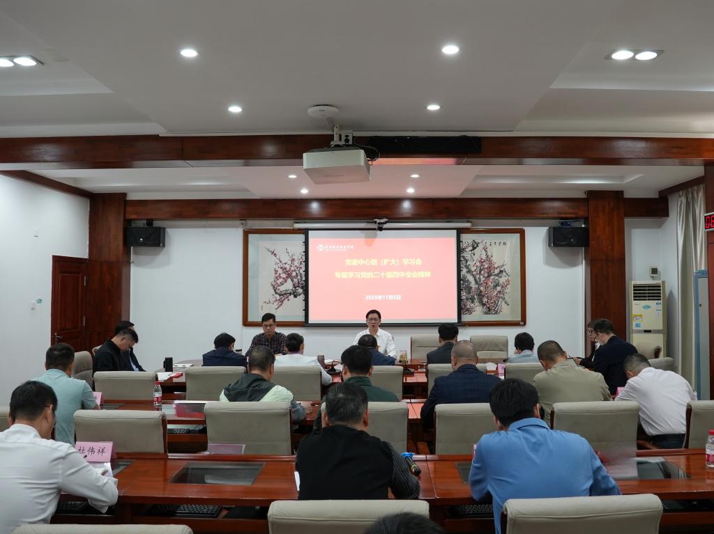 11月5日上午,我校在第一会议室召开党委中心组(扩大)学习会,专题学习贯彻党的二十届四中全会精神,深入贯彻落实党中央及省委市委关于学习宣传全会精神的部署要求。校长刘贻新,党委副书记钟茂开,学校各处室、各学院主要负责人齐聚会场,旨在将全会精神转化为办学治校的实际行动,为服务河源教育强市建设与中国式现代化发展注入“河职院力量”。