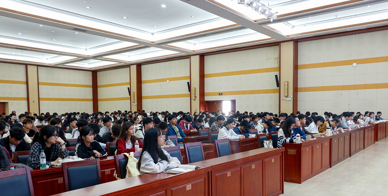 11月6日上午,刘贻新校长在学术交流中心报告厅为电信学院、工商学院相关专业的300余名大一新生讲授“思政第一课”,电信学院负责人周永福、工商学院负责人张颖参加活动,活动由马克思主义学院负责人杨党校主持。