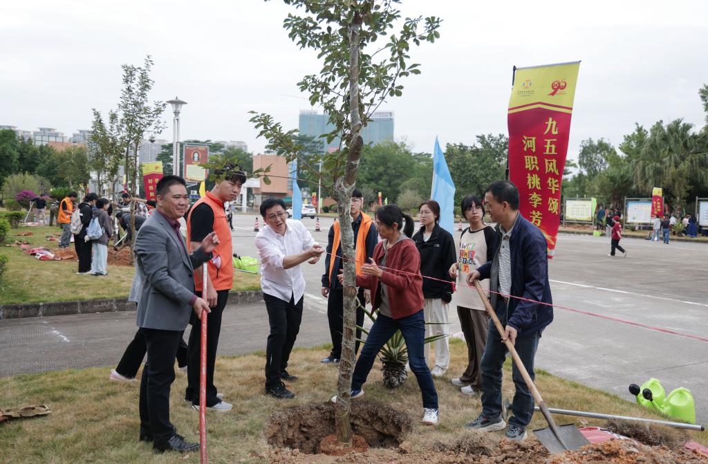仪式结束后,全体人员移步至种植区,共同参与植树活动,亲手种下象征希望与未来的树苗。“情系河职・绿满校园”不仅是一次物质的馈赠,更是一次精神的传承。河职院将继续与社会各界携手,推动绿色校园建设,培育更多优秀人才,共筑美好未来。