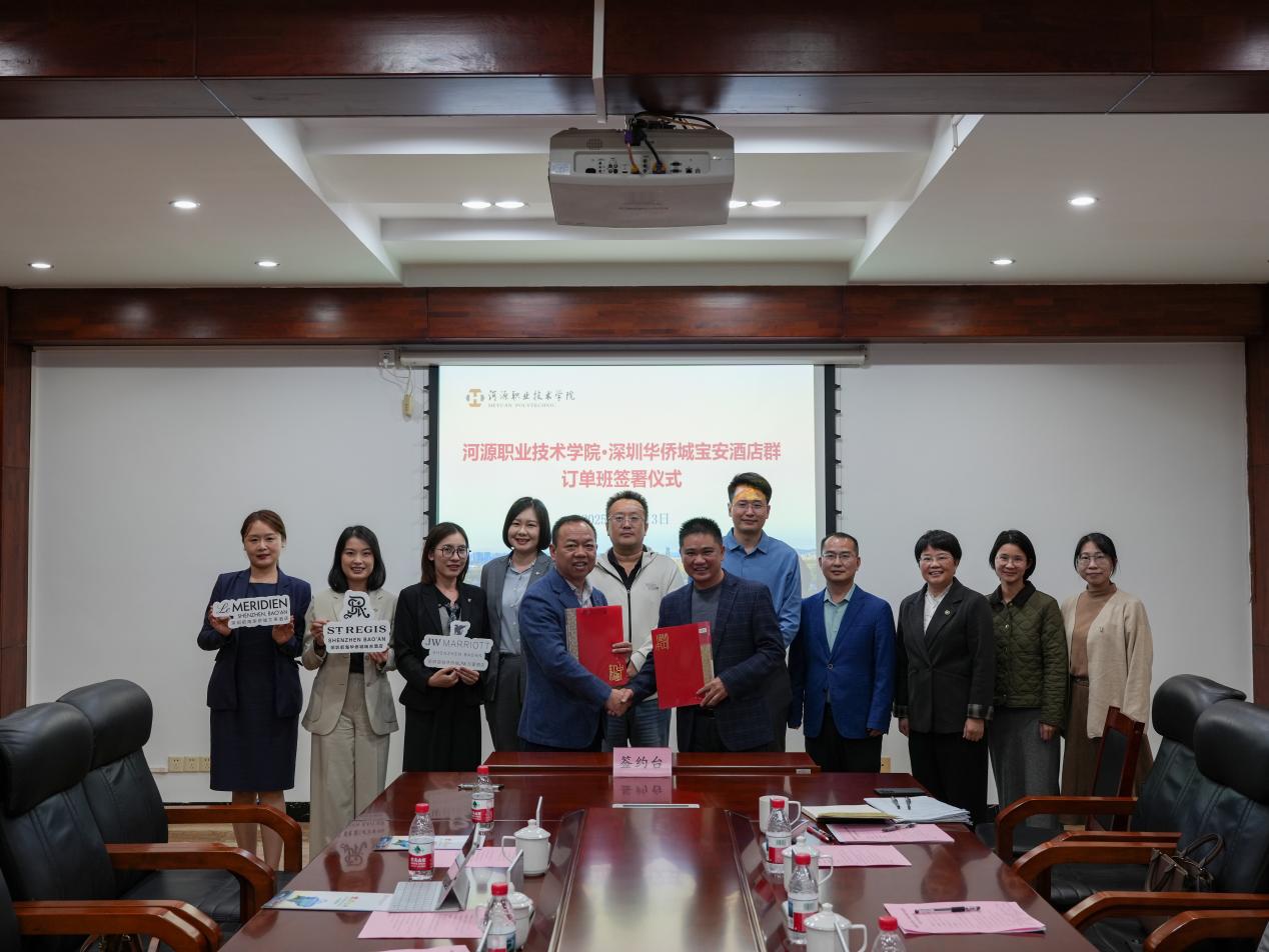 洽谈会上,校企双方围绕订单班培养、国际标准融入课程、实习实训、课程改革、技能比赛、校方教师到企业实践、企业方导师进校讲授企业课程等议题展开了深入研讨,并签订了《华侨城万豪宝安酒店集群2025年订单班协议》,共同培养具备国际视野、专业能力与职业素养的复合型酒店管理人才。
