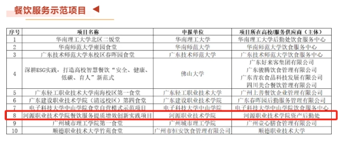 荣获“广东省高校餐饮服务示范项目”,不仅是一份荣誉,更是一份责任与动力。全体河职院后勤人将以此荣誉为新的起点,通过不断学习行业先进经验,大胆探索服务新模式,全面提升后勤服务体系的综合保障能力与应急响应水平,着力构建更加安全、优质、高效、智慧的现代高校后勤服务新格局,为学校各项事业的蓬勃发展与高质量发展筑牢更加坚实、可靠、温暖的后勤保障基石,努力在新时代高校后勤改革的篇章中,继续书写河职院的精彩答卷。