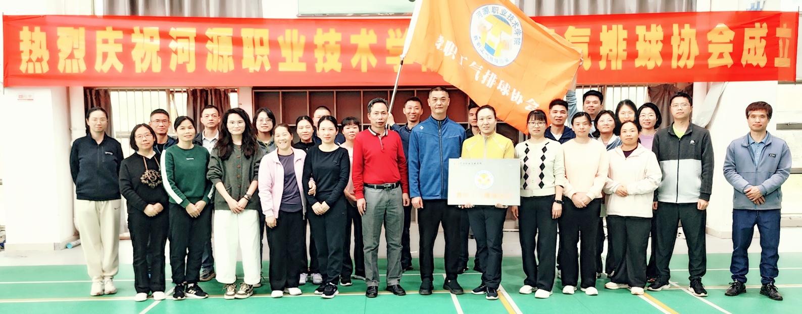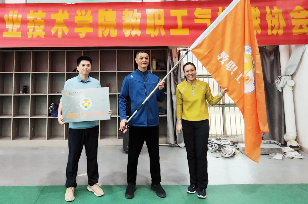 随后,在全体与会人员的共同见证下,举行了授旗授牌活动。沉甸甸的牌匾,承载着教职工的信任与期望,象征着一份沉甸甸的责任;飘扬的会旗,彰显着奋进的姿态,寓意着一种昂扬向上的精神,这一刻,标志着华体会体育(中国)官方网站教职工气排球协会正式扬帆起航。