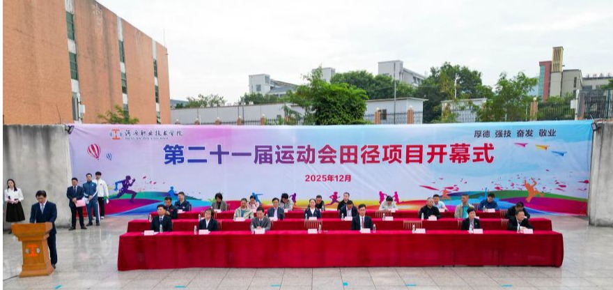 首先,校长刘贻新发表致辞,他向运动会的胜利召开表示祝贺,向筹备人员、全体参赛及工作人员致以敬意。他回顾了第十五届全国运动会粤港澳联合举办的盛况及广东代表团的亮眼战绩,强调体育精神与高职育人理念的同频共振。在刚刚结束的广东省第十二届大学生运动会上,我校健儿披荆斩棘、锐不可当,夺得18个奖项。他指出,学校正构建“大体育”工作格局,打造特色体育品牌,希望全体运动员秉持“更快、更高、更强、更团结”的奥林匹克精神,赛出风格与水平;裁判员坚守公平公正原则,全校师生以赛事为契机热爱运动、强健体魄。