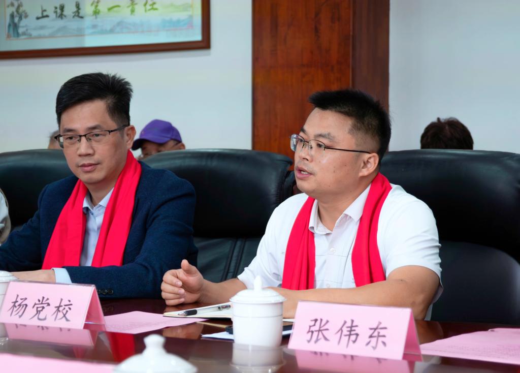 钟茂开对各位革命先辈后人的到来表示热烈欢迎。他表示,河职院红色底蕴深厚,学校前身——广东老隆师范学校,曾涌现出骆维强、张其添、欧阳忠等众多进步学生,他们毅然投身革命,加入东纵二支队。其中骆维强还与东纵二支队教导员等人在和平九连山小延安并肩战斗,功勋卓著。“老一辈革命家的光辉事迹和矢志不渝的革命精神,值得我们深入学习、大力传承与弘扬。”钟茂开表示,从昔日的广东老隆师范到今日的河职院,学校始终高度重视思想品德教育。本次座谈会的成功举办,为学校的思想政治教育工作注入了更为丰富的红色基因与文化滋养。学校将充分吸纳和转化老前辈们的指导成果,将其应用于教育、教学实践当中,助力河职院在为国家培养德才兼备的人才方面提供更强有力的支持。