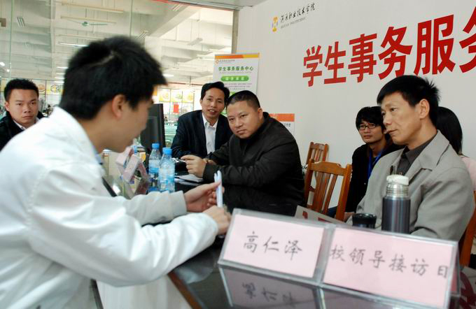 据悉,我校学生事务服务中心从2009年9月30日正式运行,中心通过网页服务、向辅导员反映情况、领导接访三种方式为同学们服务。中心以“竭诚为同学们提供一站式综合服务服务”为宗旨,并承诺“凡是在服务中心反映的问题都会向相关部门反映,凡是反映的问题都有回复。”