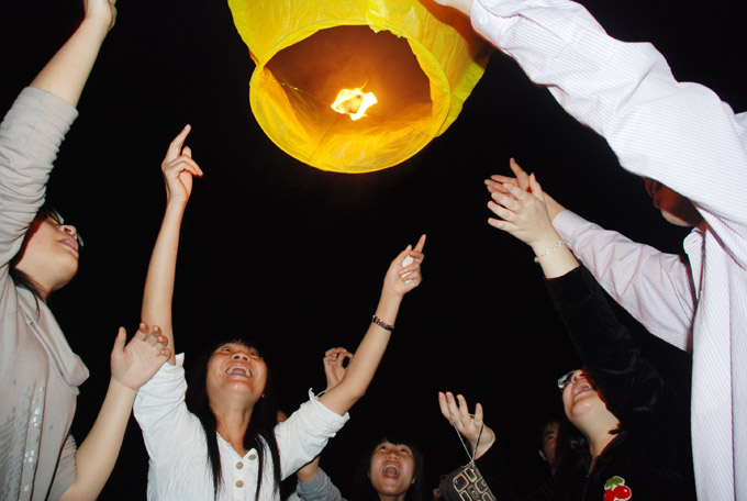 走入操场,则是另一种热闹,同学们三两成群地聚在一起放孔明灯。小黄表示:“放飞孔明灯,放飞了我们的梦想,也寄托了我们对远方亲人的思念。”