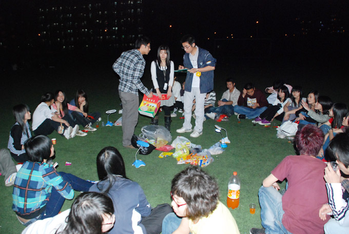 由于不少同学刚从家乡赶回校,有的班级举行了特产交流会。同学们聚在操场上,分享着各自从家中带来的美食,共赏着那一轮皎洁的明月。