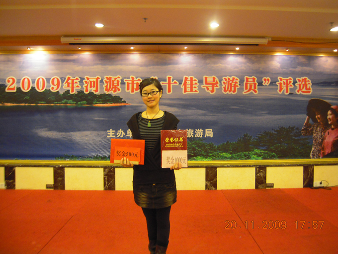 据悉,此次来自河源市各旅行社、院校众多优秀导游参加了本次比赛,参赛选手们讲解流利,才艺出众,他们都是通过各单位海选后推荐参加市决赛的。我校杨蓓、张冰纯同学更是表现不俗,分别以出众的讲解、特色的小品及舞蹈《青花瓷》,博得了评委们的赞同和在场观众热烈的掌声。赛后,领导及评委们对我校选手的表现给予了很高的评价。两位同学将会代表河源市旅游局承接明年世界客恳亲大会期间的政务导游接待工作。