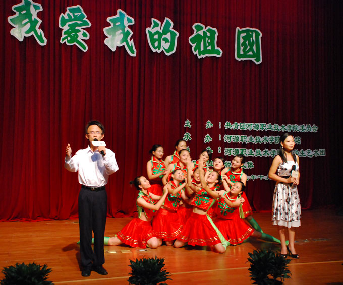 10月15日晚,以“我爱我的祖国,庆中华人民共和国成立60周年”为主题的诗歌朗诵会在我校学术报告厅举行,校团委、学工处等相关负责人出席了此次晚会。