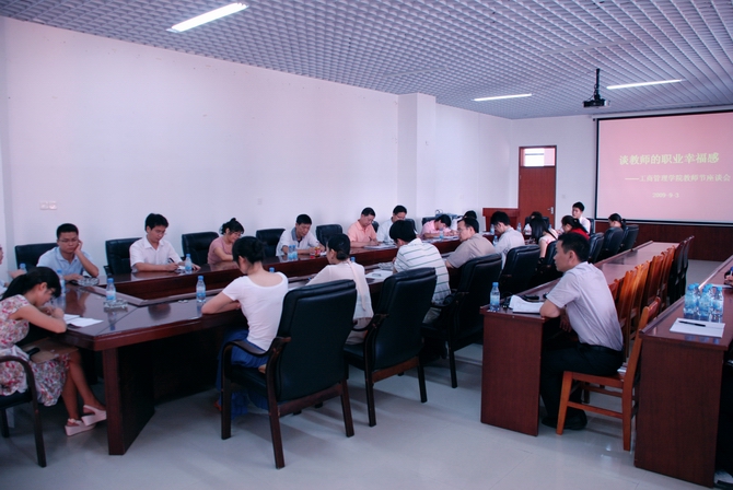 为迎接第25个教师节, 9月3日,校党委书记高仁泽与工商管理学院教师以“谈教师职业幸福感”为主题举行座谈会。