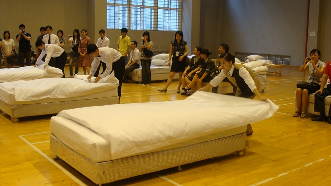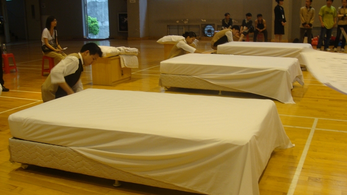 我校同学在中式团体铺床中
