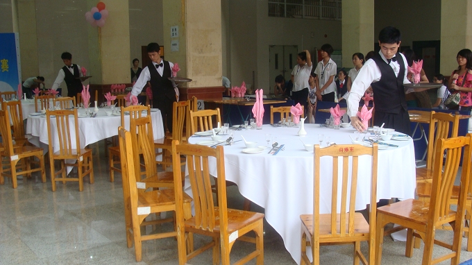 我校同学在中餐团体摆台比赛中
