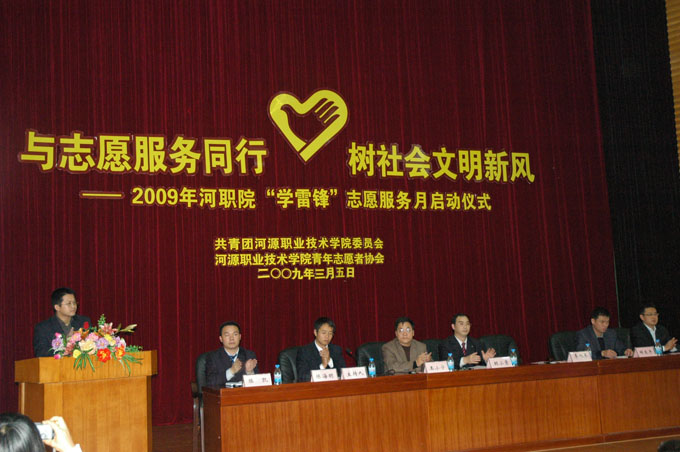 3月5日下午,由共青团华体会体育(中国)官方网站主办,青年志愿者协会协办的“学雷锋”志愿服务月启动仪式在图书馆学术报告厅揭开了帷幕。学校纪委、党办、学工处长、校团委、各院系及团市委学少部、市志愿者联合会相关负责人出席了仪式。除此以外,出席这次启动仪式的嘉宾有河源笔架山风景区、市血站中心相关人员。