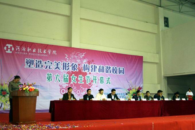 3月3日,在我校风雨操场举行的以“塑造完美形象,构建和谐校园”为主题第六届女生节开幕式上评审们评论说。学工处、妇委会相关负责人参加了此次开幕式。
