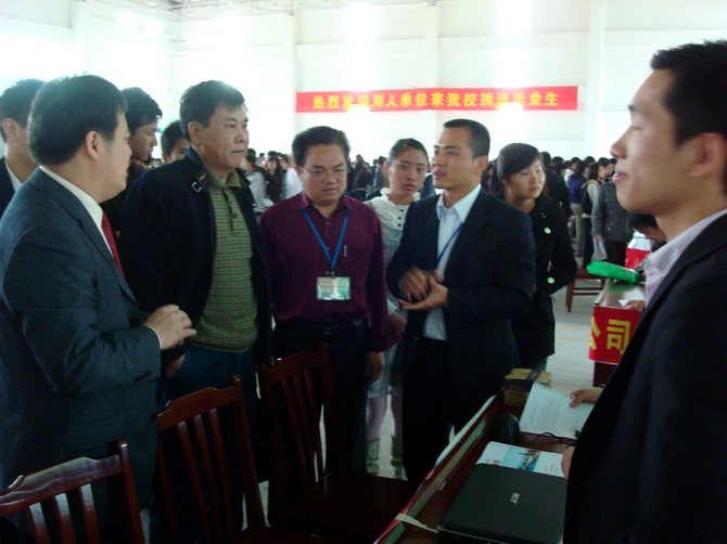招聘会为期一天。毕业生十分踊跃,整个会场秩序井然,气氛热烈,充分展示了我校毕业生的扎实专业技能和良好的精神风貌,给用人单位留下了深刻印象,得到了用人单位的充分肯定。虽然金融危机对企业带来很大的影响,但一些以前录用过我校毕业生的“老关系户”,却对我校毕业生“情有独钟”,今年又来我校招聘毕业生。如河源劲达集团人事部经理刘电鹏说:“河职院毕业生素质高,去年招的3位毕业生已是我公司的技术能手,今年计划再招5个;应对危机靠人才,储备好人才好‘过冬’”。