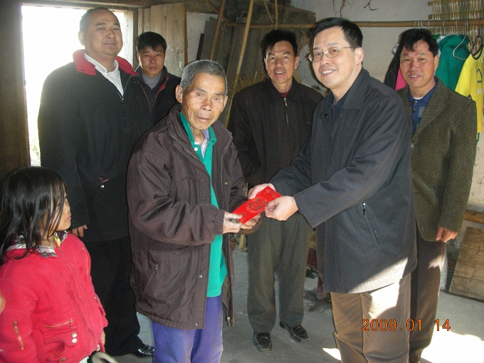韦副书记一行还在村干部的陪同下分别看望了该村的老党员、孤寡老人和特困户,为他们送上慰问品和慰问金。
