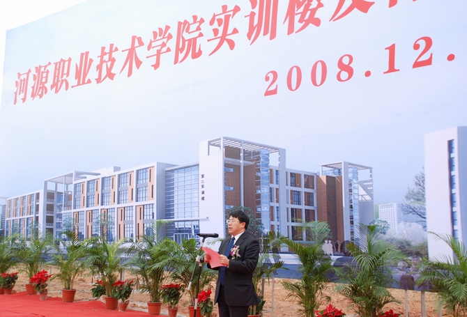 刘校长在奠基仪式上致辞指出,我校为了适应省职业教育发展的新形势,2007年以优异成绩通过教育局高职高专人才培养工作水平评估,2008年我校乘势而上,提出“加快发展、速提内涵”新思路和创建广东省示范性高等职业院校的新目标。经过努力,我校内涵建设取得可喜成绩,教育教学质量迈上了新台阶。他表示,学院实训楼及行政办公楼的动土兴建,必将为广大师生营造一个良好的工作、学习和生活环境,必将有力推动我院创建目标是顺利实现。