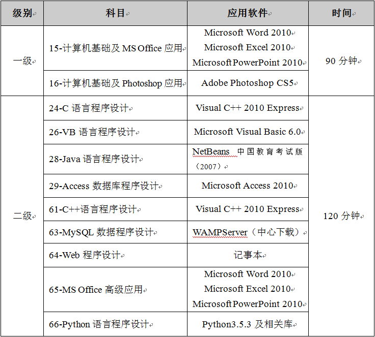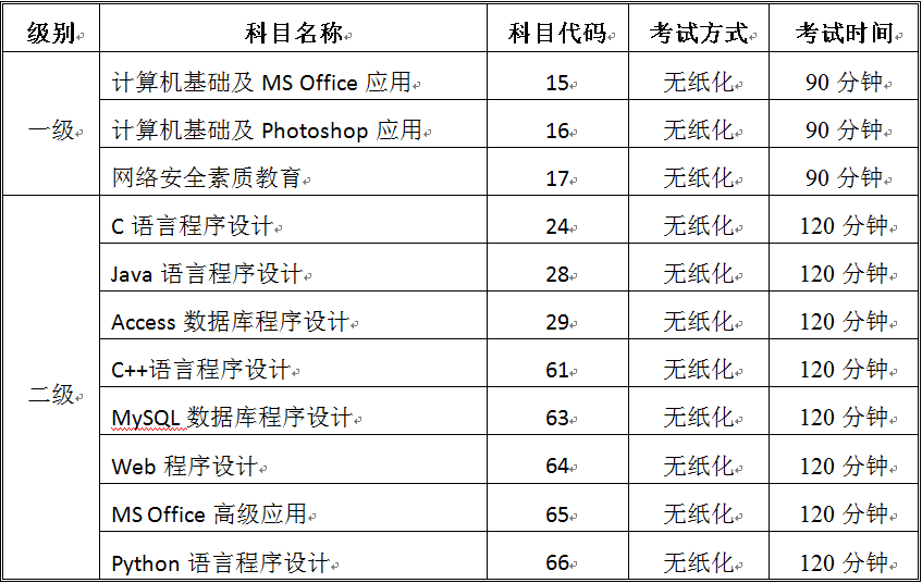 2020年9月全国计算机等级考试开考科目(华体会体育(中国)官方网站考点)