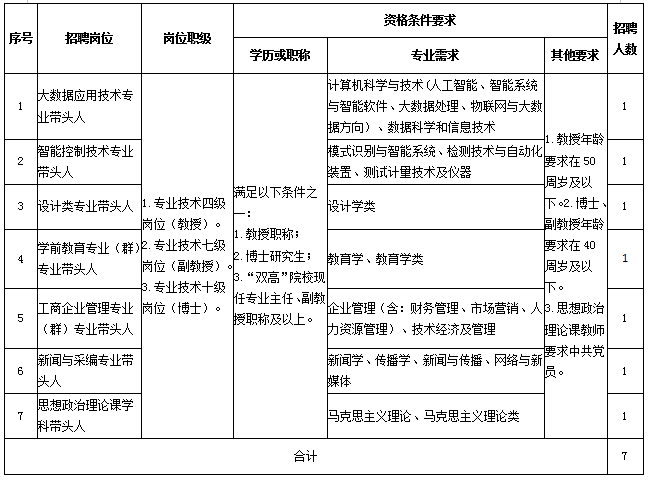 为进一步加强学校人才队伍建设,优化师资队伍结构,根据省市有关文件规定,经学校研究,并报市委组织部、市人社局同意,现面向全国公开招聘专业带头人。有关事项公告如下。