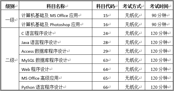 2021年9月全国计算机等级考试开考科目(华体会体育(中国)官方网站考点)