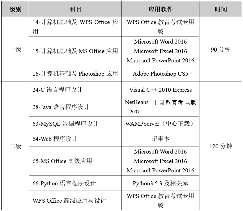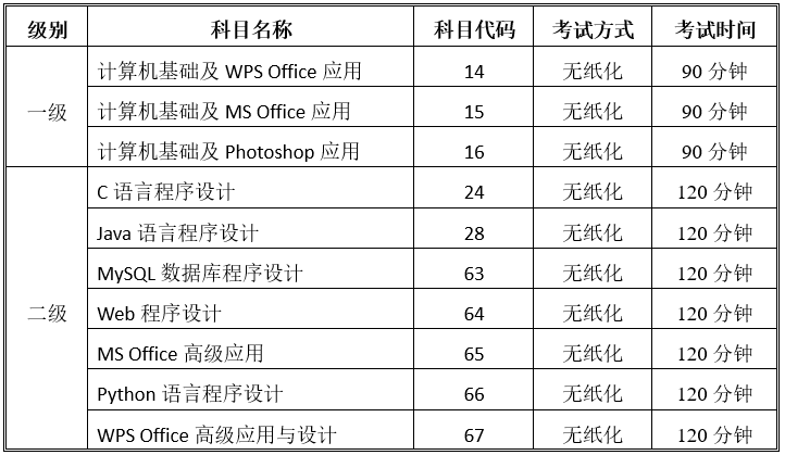 2024年9月全国计算机等级考试开考科目(华体会体育(中国)官方网站考点)