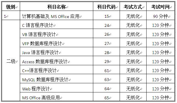 2015年下半年全国计算机等级考试开考科目(华体会体育(中国)官方网站考点)