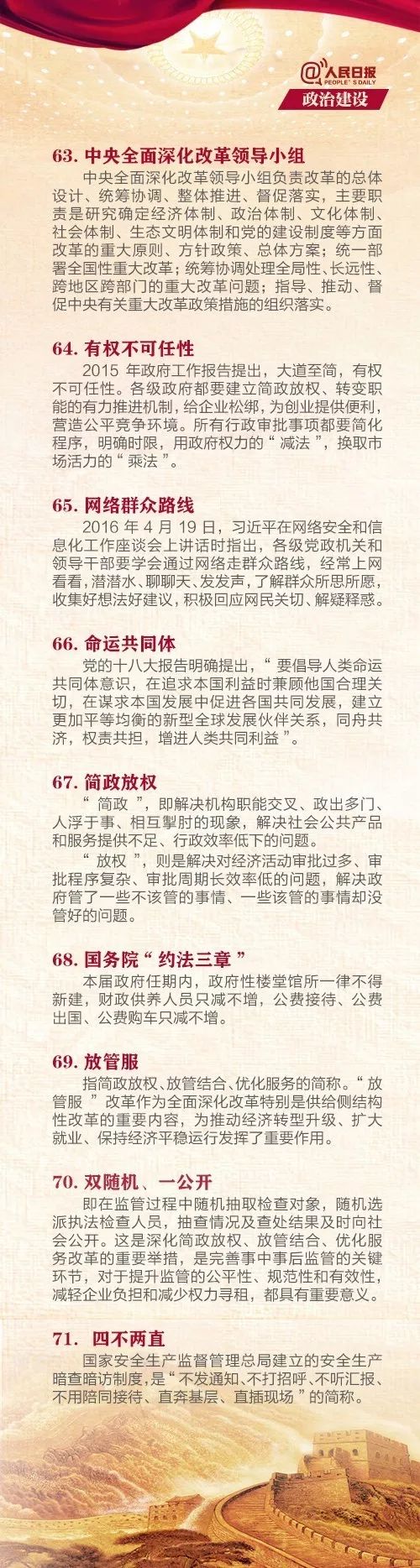 党的十九大马上就要召开了,中国特色社会主义 、“两学一做”、“三严三实”、“四个全面”战略布局、五大战区、分享经济、“放管服”……这些词,你都知道是什么意思吗?十九大前,这100个关键词你一定要知道!