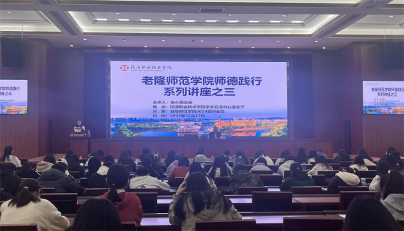 为了弘扬教育家精神,引导学生践行师德,学习师德规范,厚植教育情怀,立高尚师德,12月27日下午,老隆师范学院在学术交流中心举办了师德践行系列讲座之三“师德践行 立德树人”的主题讲座,邀请了河源市第四小学教研室主任张小燕优秀校友主讲。讲座由谢战锋副书记主持,学院2024届毕业生聆听了讲座。
