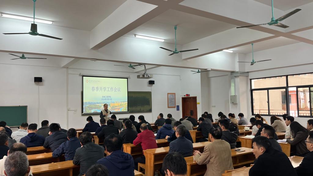 为及时传达省市高质量发展大会精神和校务会工作要求,全面部署开学工作,确保各项工作有序开展,2月23日上午9时,机电工程学院召开2024年春季开学工作会议。全体教职工参会,会议由钟建坤院长主持。