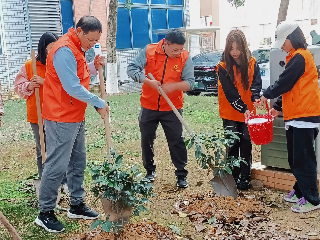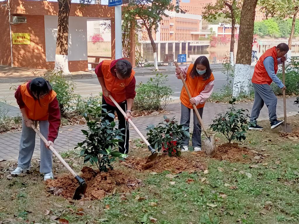 为深入学习贯彻习近平生态文明思想,推进绿美广东生态建设,共筑绿色生态屏障,美化环境,积极响应“绿美广东,青年先行”广东青少年绿美志愿行动的号召,电信学院于3月7日下午在实训楼周围开展植树护绿活动。