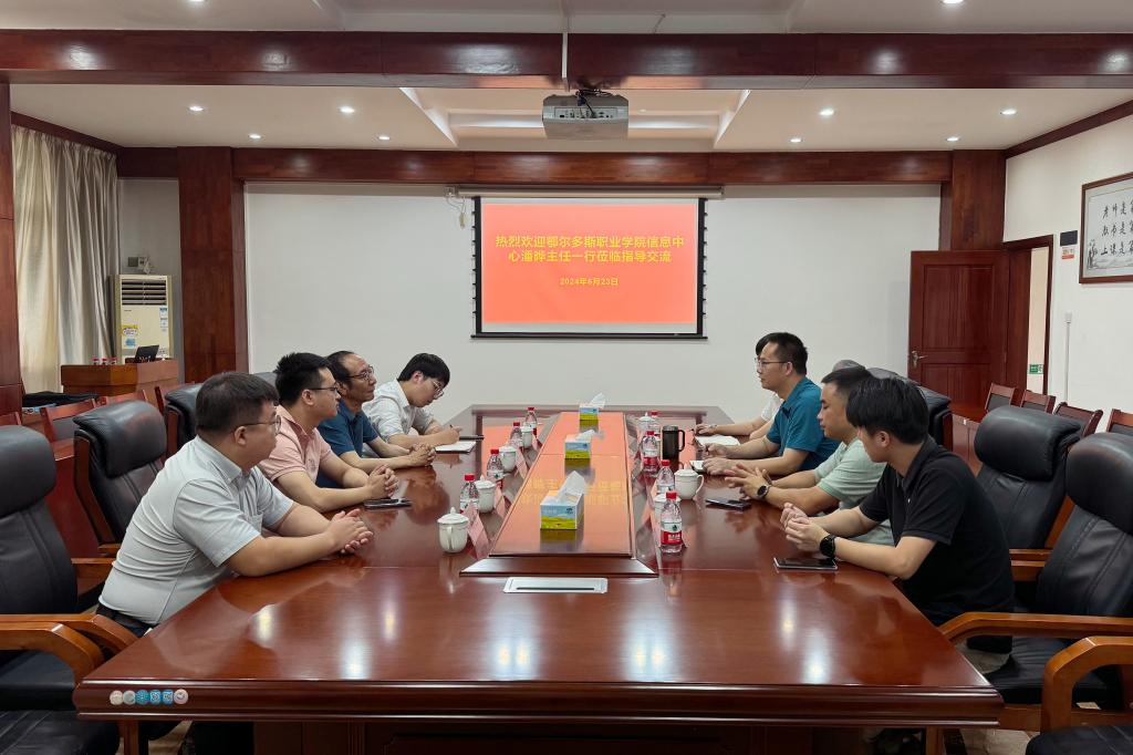 6月23日,鄂尔多斯职业学院信息中心主任潘晔一行4人到访我校进行业务交流,我校信息中心杨文主任在行政楼第二会议室接待了来访人员,并与对方进行交流座谈。