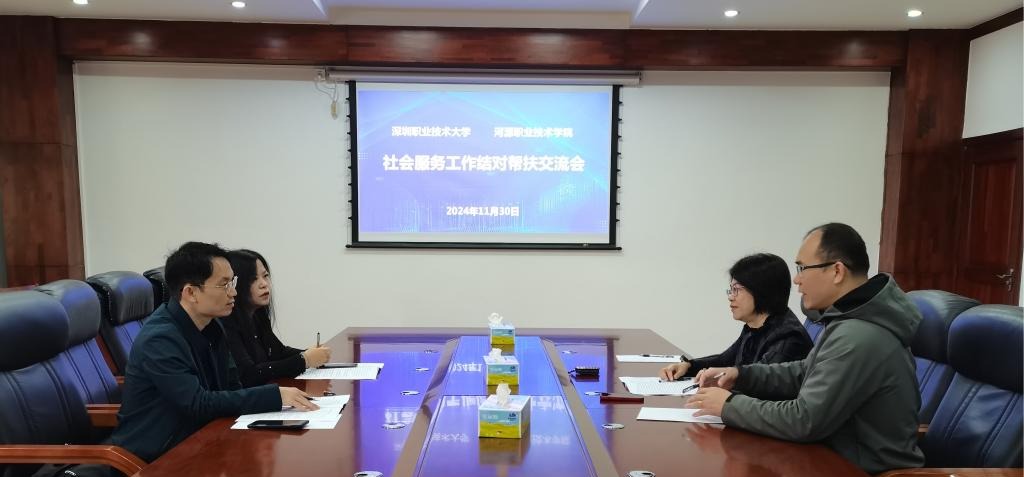 为深入落实“职业教育结对帮扶行动计划”,11月30日,深圳职业技术大学继续教育与培训学院(以下简称“深职大继培学院”)黄志坚院长一行到访我校进行业务交流,我校继续教育学院李文萍院长在行政楼第二会议室接待了来访人员,并与对方进行深入交流。