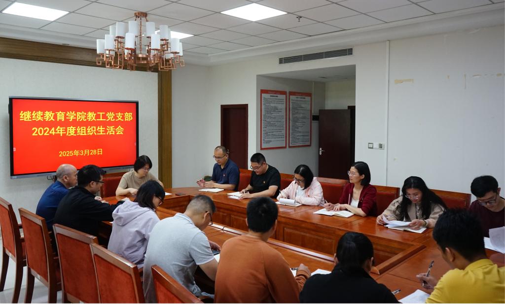 3月28日上午,继续教育学院党总支在学院会议室召开了2024年度组织生活会。会议由党总支书记李文萍主持,党总支全体支委、专职组织员参加会议。