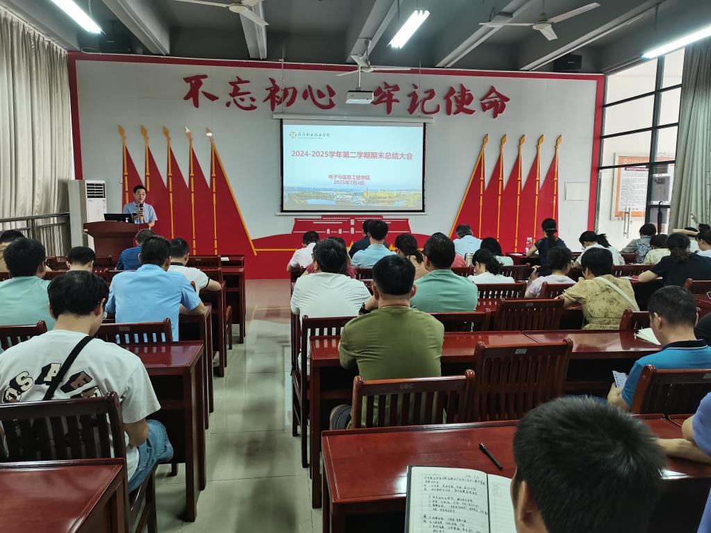 7月4日上午,电信学院在实训楼B306召开2024-2025学年第二学期期末总结暨学院“十五五”规划发展方案汇报。王小宁副校长、学院全体教职工出席了本次会议。会议由学院党委书记周永福主持。