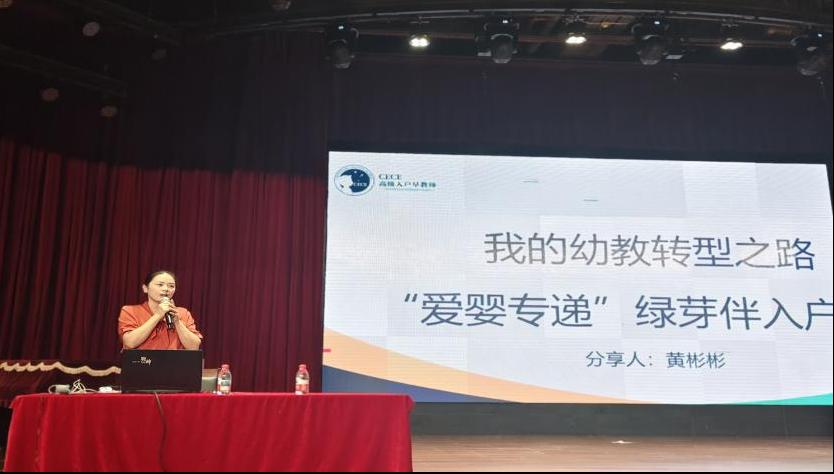东江首府标点幼儿园的黄彬彬老师带来了题为《我的幼教转型之路——“爱婴专递”绿芽伴入户》的精彩演讲。她围绕“0-3岁婴幼儿早期发展服务”这一新兴领域,讲述从传统幼儿园教学转向社区入户早教服务的转型历程,详细介绍“爱婴专递”项目中“家庭需求评估—个性化指导方案设计—亲子互动示范教学”的服务流程。这一分享打破了学子对幼教职业的传统认知,展现了幼教工作从“园所内”向“园所外”延伸的多元可能性,为其探索职业创新方向提供新启发。