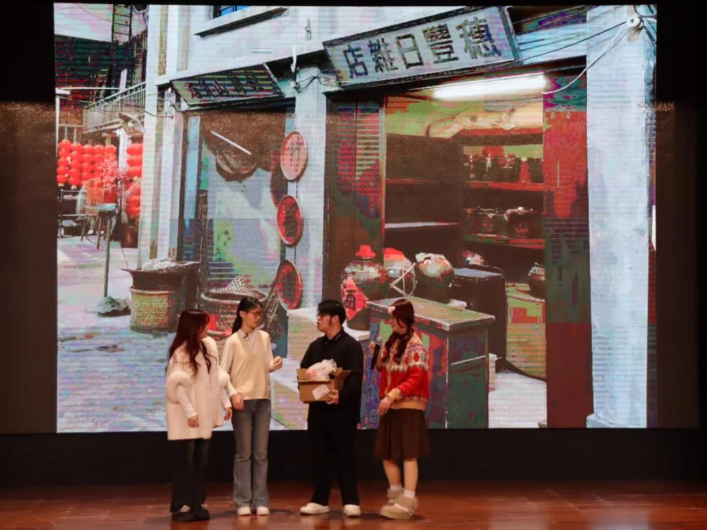 花朝戏作为河源市紫金县地方特色小戏种,是国家级非物质文化遗产,扎根群众生活土壤,以诙谐幽默的艺术风格成为深受喜爱的“草根文化”瑰宝。此次汇报演出的五个作品均由学校花朝戏社团学子自编、自导、自演,既坚守传统韵味又彰显时代活力:《西洋蔡的年夜饭》以年夜饭为线索勾勒邻里温情,《逆光的勇气》聚焦校园正义诠释青年担当,《好“果”自有诚信价》用创业故事传递诚信内核,《外来女婿本地媳》以情感纠葛打破地域偏见,传统戏曲形式与当代价值观实现深度交融。学子们以朴实真挚的表演,将花朝戏的独特韵味与角色情感演绎得淋漓尽致,现场掌声此起彼伏,气氛热烈。