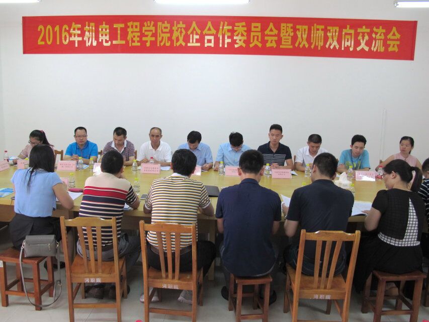 7月13日下午,机电工程学院校企合作委员会暨双师双向交流会在实训楼B307-1会议室召开。在此会议召开前,委员们先参加学校举办的校企合作办学理事大会,会后参加二级学院校企合作委员会暨双师双向交流会。会议由校企办陈艳芳主持,机电学院钟建坤院长、领导班子成员、各专业主任、实训部长及16家校企合作公司代表参加了此次会议。