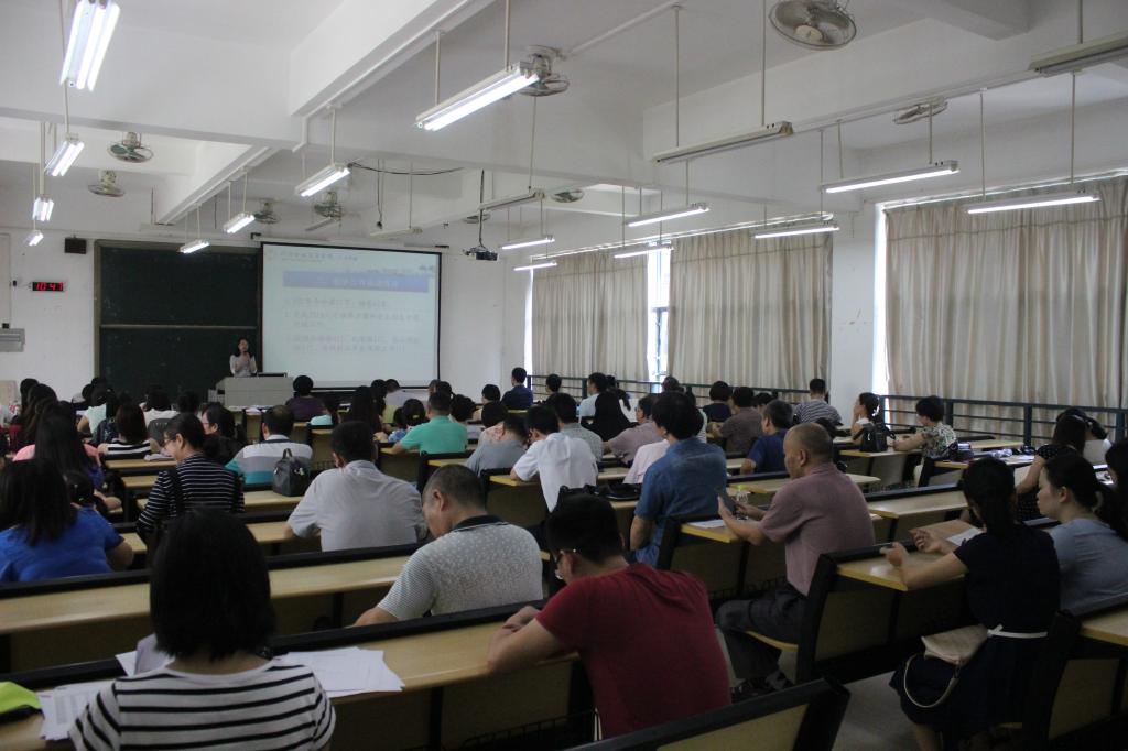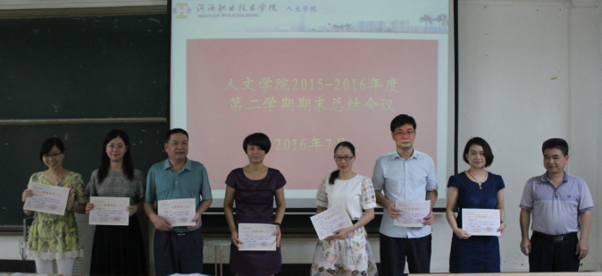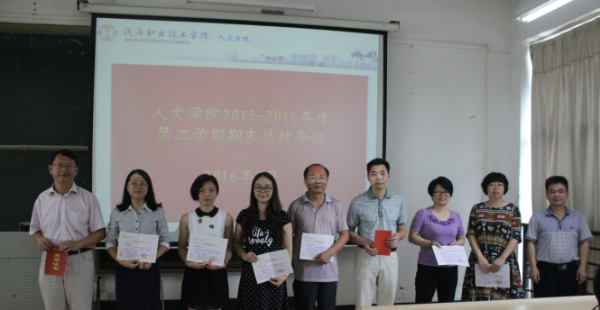 7月14日10点30分,人文学院全体教职工在教学楼C202召开2015-2016学年度第二学期期末总结会议,唐汉芳副校长出席会议。