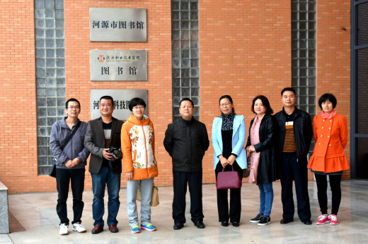 11月10日和平县图书馆馆长李金凤率队一行四人莅临我馆交流,我校图书馆馆长赖新优及相关部主任热情接待并带领和平馆同行参观我馆。