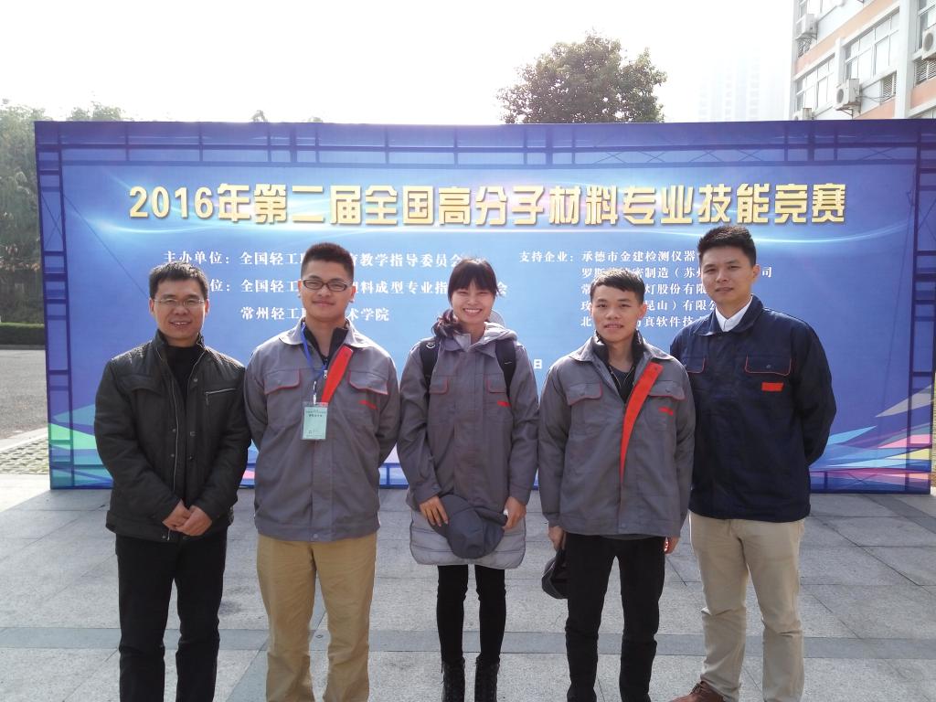 2016年12月2日—5日,第二届全国高分子材料专业技能竞赛在江苏省常州市常州轻工职业技术学院举行,来自全国各地的代表队同台竞技,我院高分子专业首次选派一支队伍参赛,共获得单项一等奖1个、二等奖2个和团体二等奖的佳绩。
