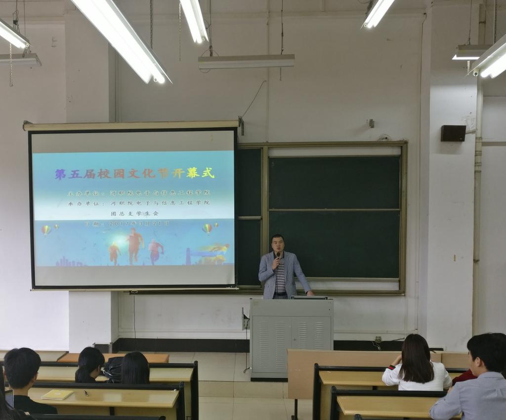 给力学生,提升内涵;拓展文化视野,引领校园文化。2017年3月21日下午,电信学院在教学楼D206举行第五届校园文化节开幕式。参加开幕式的有第十届团总支学生会全体成员、专业团支部成员、班级团支部。开幕式由团总支书记杨日奎主持。