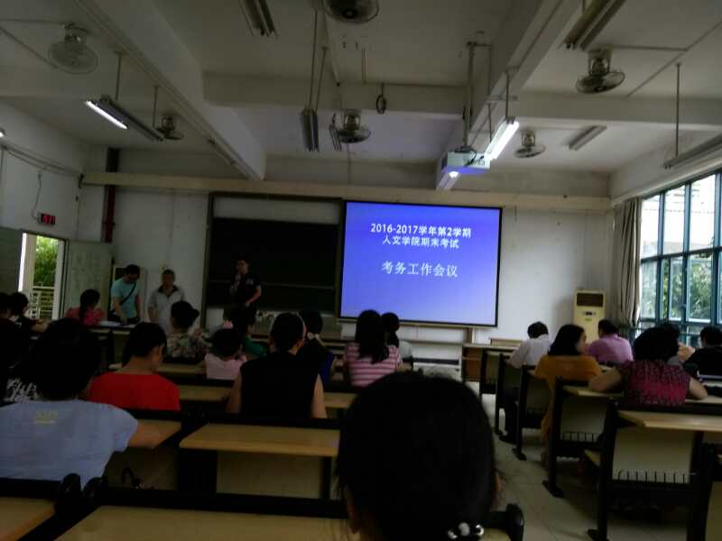 为进一步严肃考风考纪,做好本学期期末考试组织工作,人文学院于2017年6月16日下午在教学楼C201召开了期末考试工作会议。人文学院全体教职工参加了此次会议,会议由人文学院副院长向群飞主持。