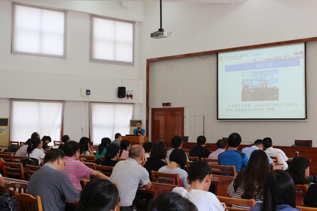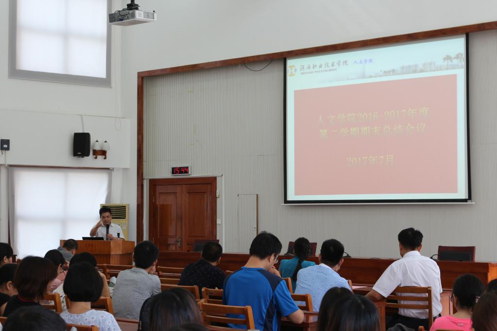 7月4日15点00分,人文学院全体教职工在行政楼楼C108召开2016-2017学年度第二学期期末总结会议,陈德清校长、唐汉芳副校长出席会议。