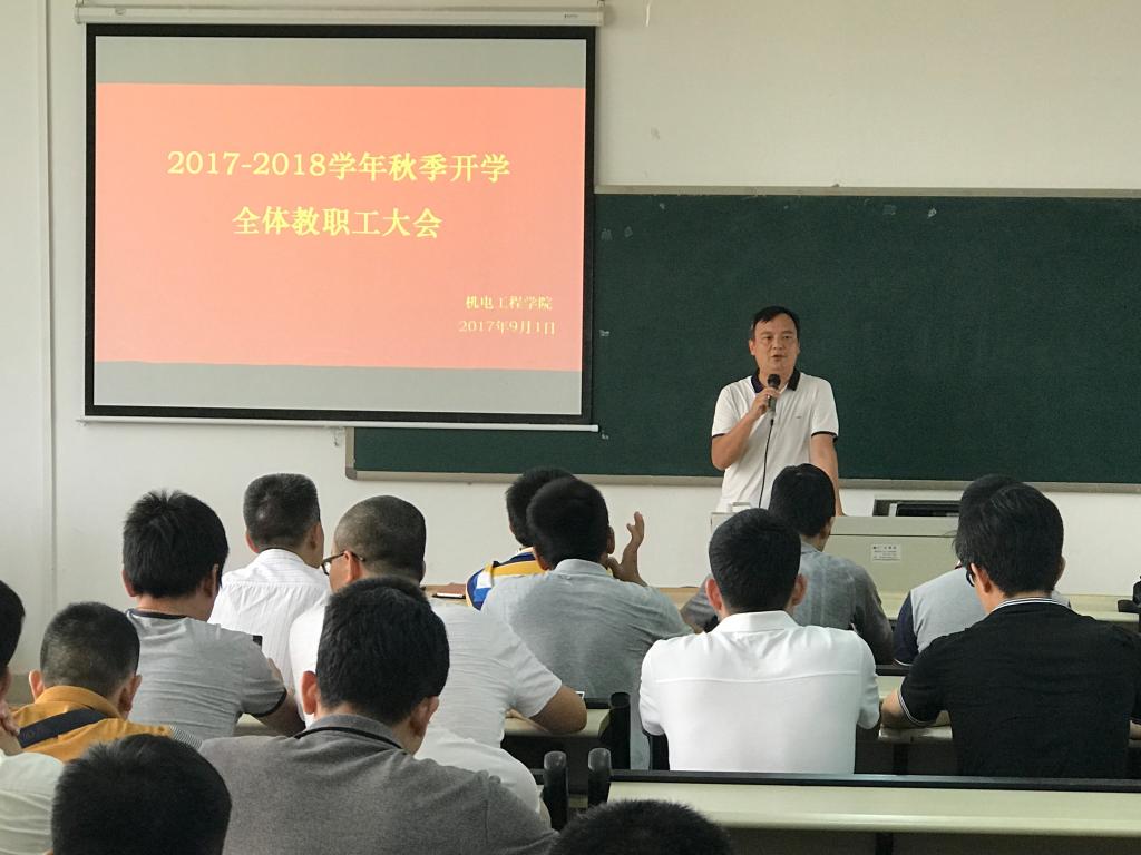 2017年9月1日下午3点,机电工程学院在实训楼B306召开2017年秋季开学教职工大会,会议由钟建坤院长主持。