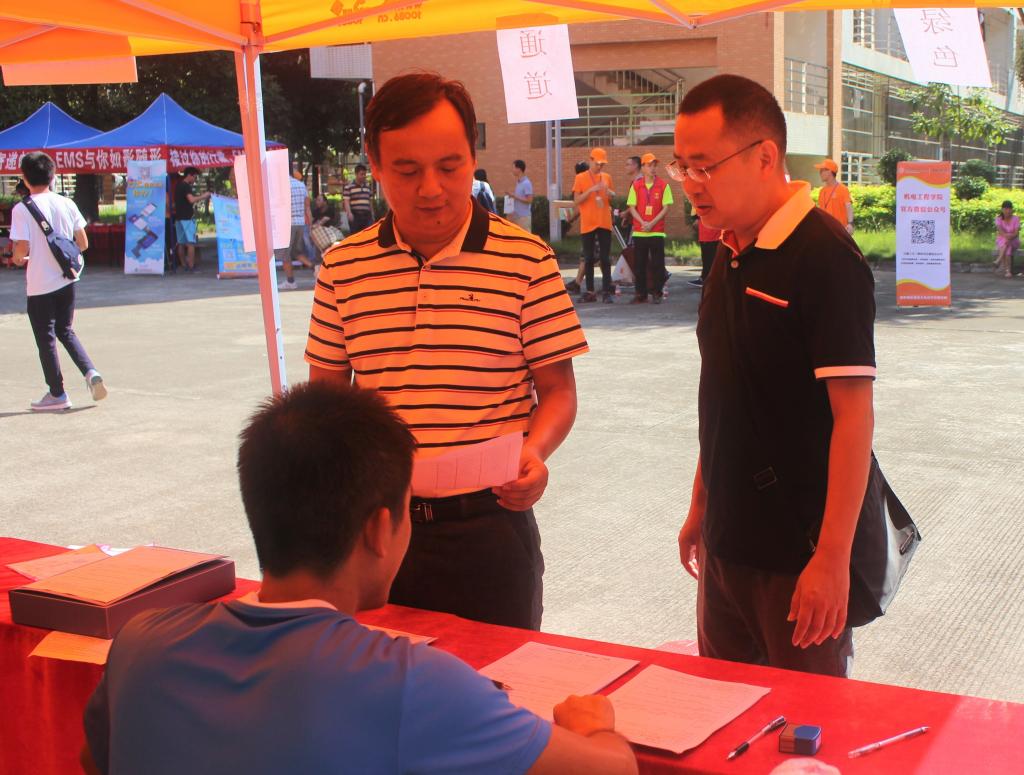 陈德清校长等领导逐一走访了机电学院大本营的各个站点,向接待新生报到的师生们表示慰问,仔细询问了迎新进展的情况,与新生家长亲切交谈,并对志愿者们的热情和细心表示赞扬。